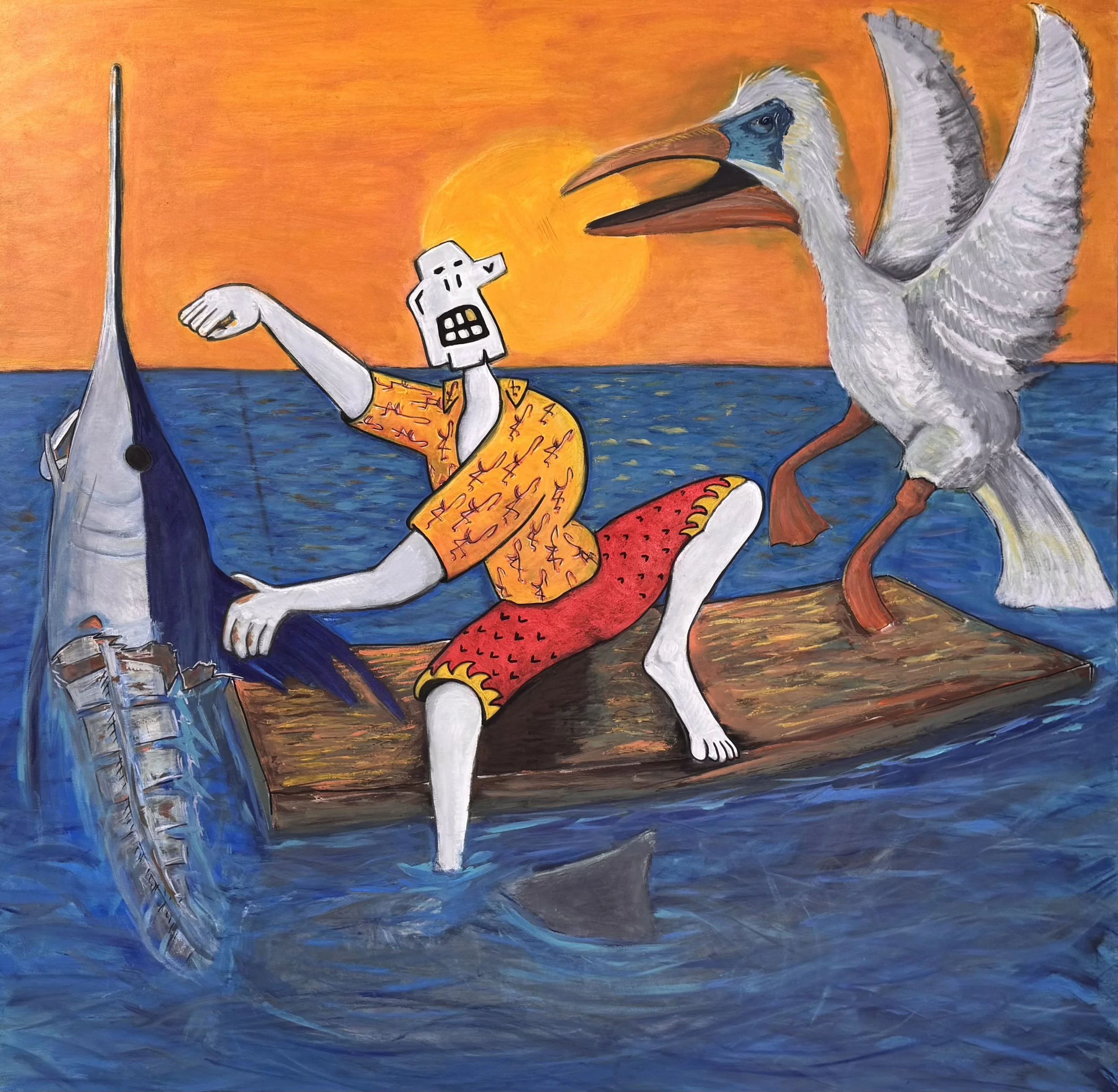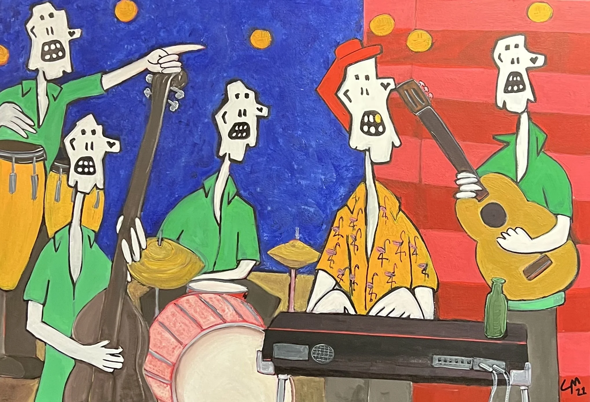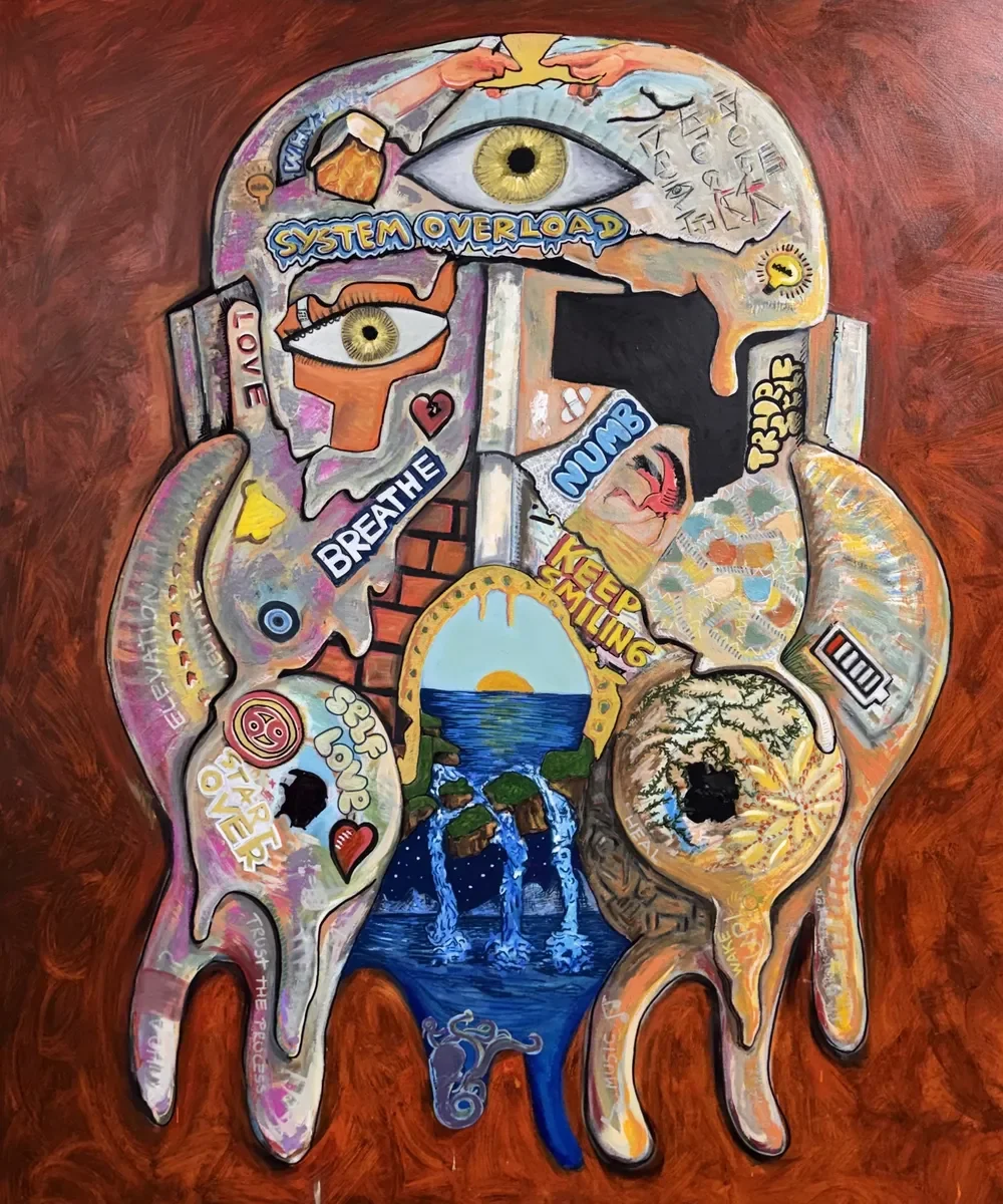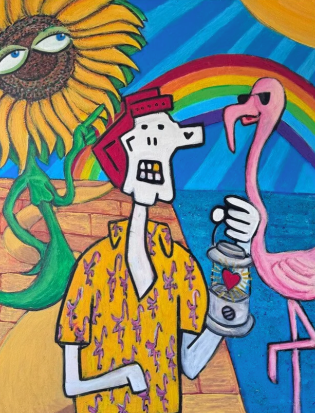 Camilo Martinez is a Miami-based multidisciplinary artist and musician who creates a visual language where character, color, music, and symbolism operate as psychological tools. Drawing from personal experience with burnout, his pop surreal works navigate identity, healing, and transformation through recurring figures like Joe Hueso and masked archetypes, bridging personal narrative with collective experience.