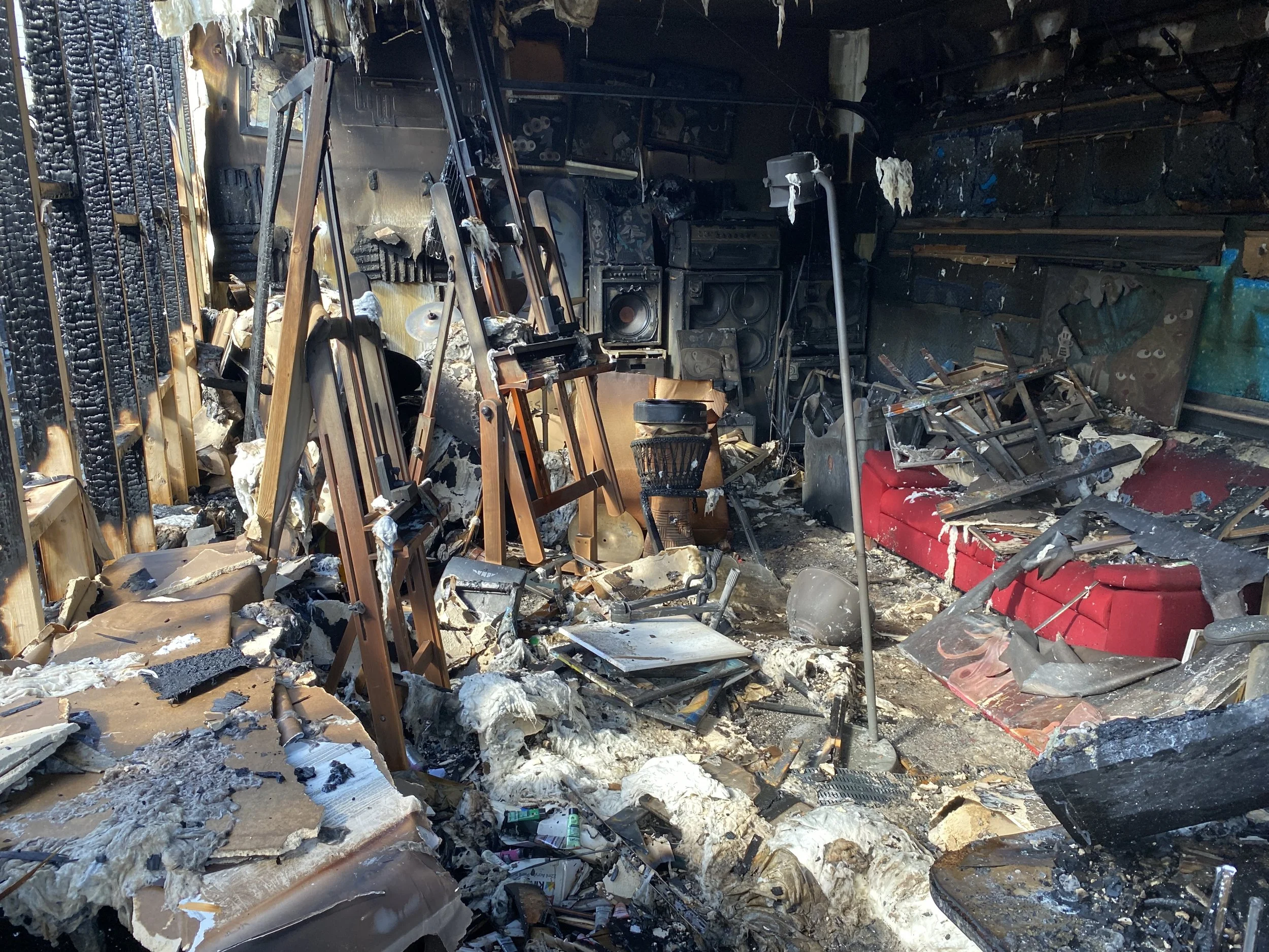 In December 2021, a devastating fire consumed Camilo’s studio, destroying years of artwork, music, and memories.