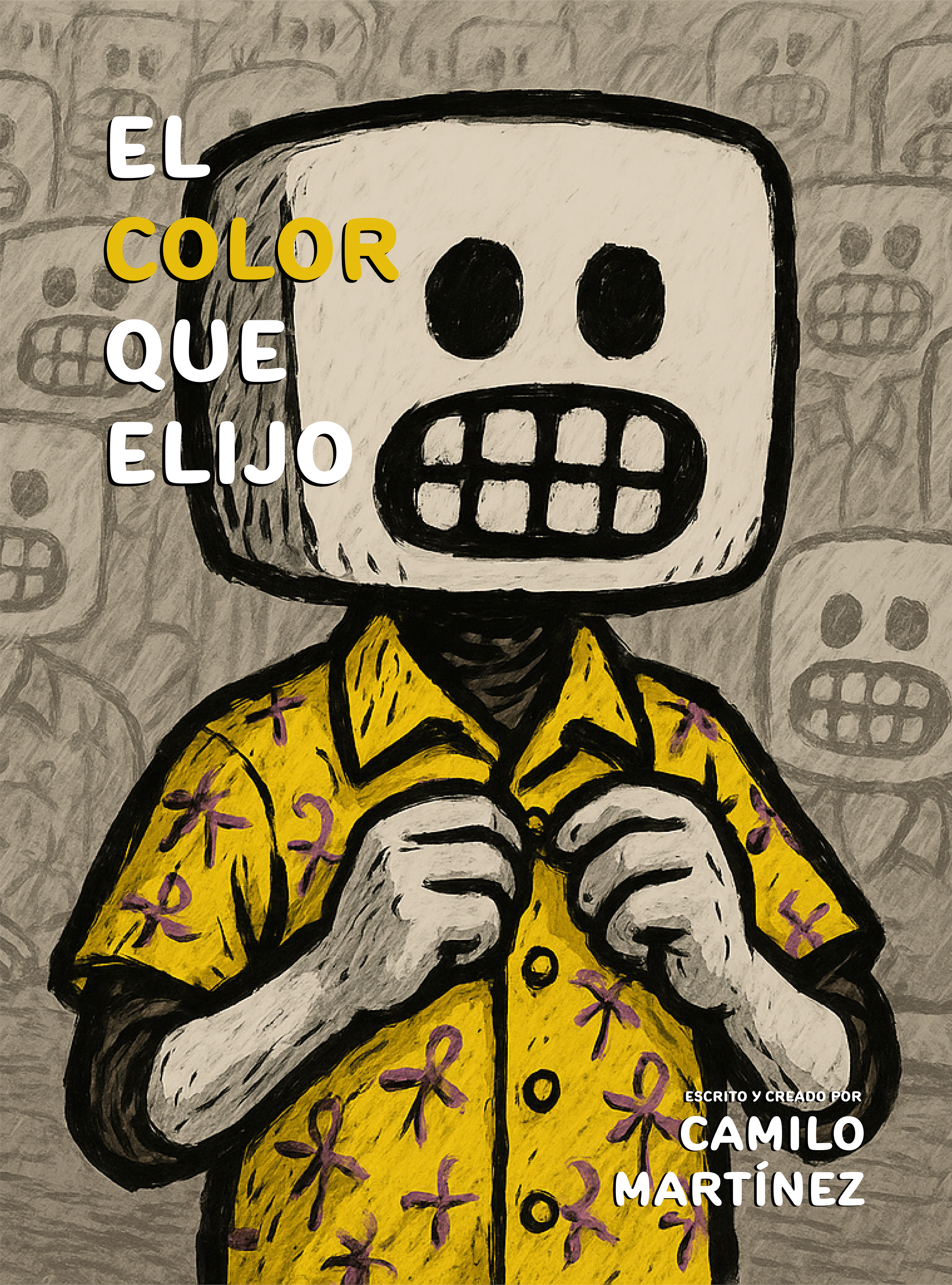 Camilo Martínez, also known as @funkydisonante, is a Colombian-American pop-surreal and expressionist artist whose work transforms personal struggle into bold, emotionally charged narratives. His visual universe blends childhood nostalgia, cartoon symbolism, and the raw texture of human experience, a fusion of vulnerability and rebellion expressed through color, music, and form.
