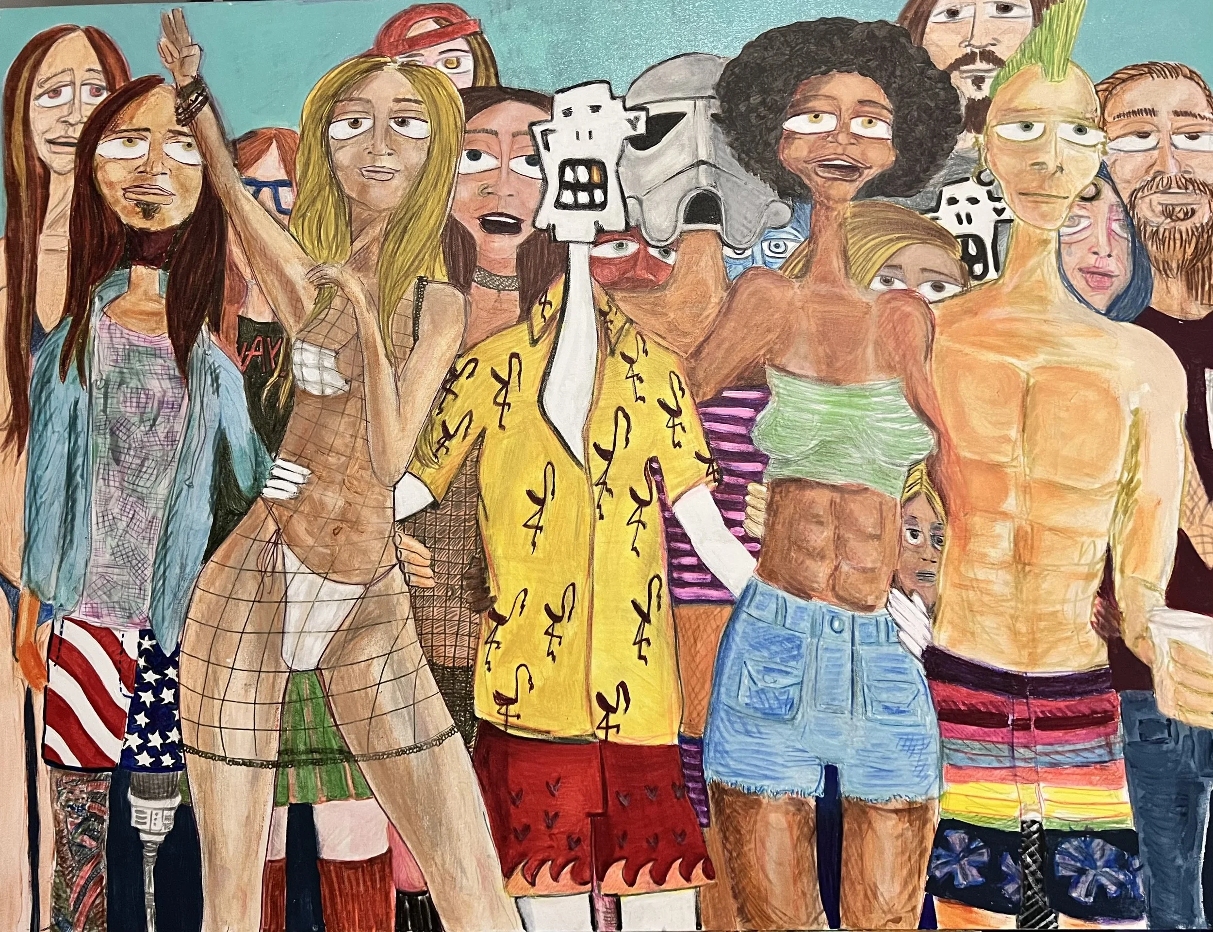 Through layered compositions, symbolic storytelling, and expressive brushwork, Martínez reimagines pop culture and spirituality as mirrors for self-reflection. He embraces imperfection with sincerity, finding beauty in what is fractured, unfinished, or emotionally raw. His art is a dialogue between music, memory, and emotion, a search for balance where vulnerability becomes strength and color becomes truth.